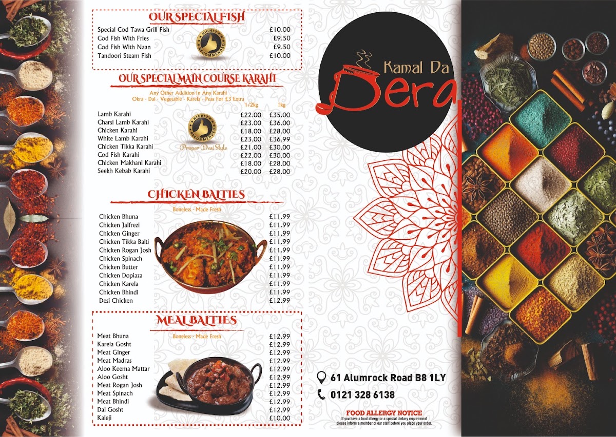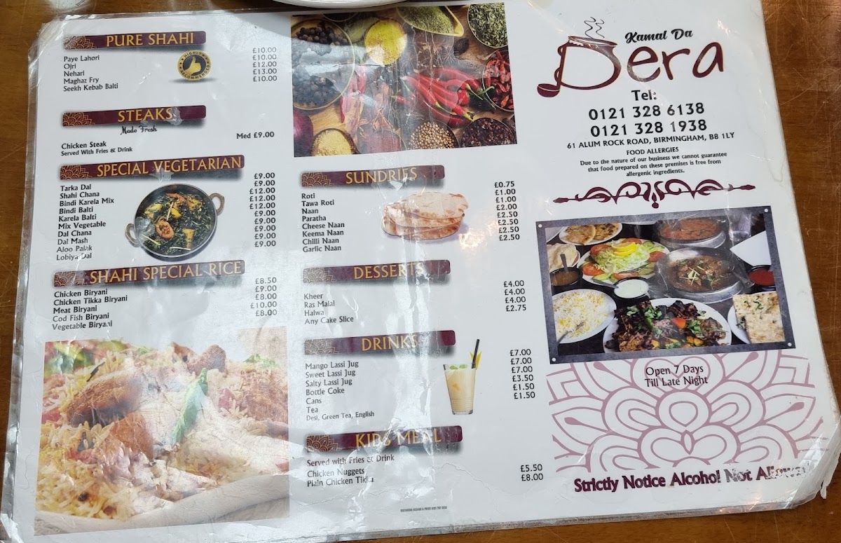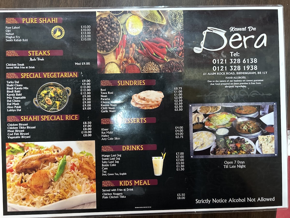 Located at 61 Alum Rock Rd in Saltley, Birmingham, Kamal Da Dera offers an authentic dining experience rooted in the rich culinary traditions of Punjab and northern India. The Kamal Da Dera Menu is an inviting showcase of bold, rustic flavours that celebrate homestyle Punjabi cuisine with a street food twist. For those familiar with South Asian dhaba culture, this eatery captures the essence perfectly-right down to the clay oven aromas and generous portion sizes.